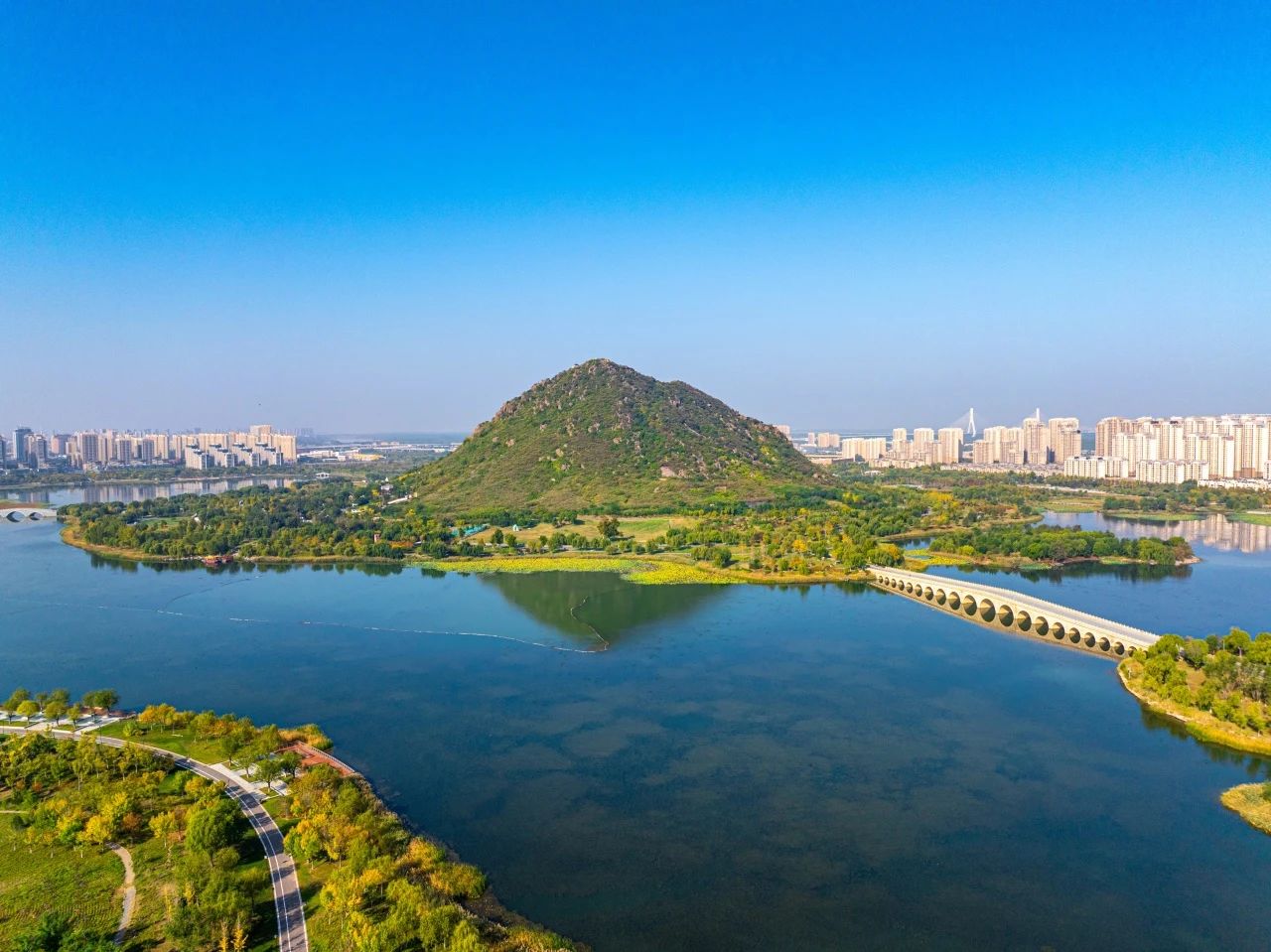 2013年以來,濟(jì)南持續(xù)整治建設(shè)華山片區(qū),面積達(dá)6平方公里之多的華山歷史文化濕地公園建成納客。海拔197米的華不注山下,華陽宮莊嚴(yán)肅穆,環(huán)山湖泊水波蕩漾。一幅新時代的鵲華秋色畫卷徐徐展開。