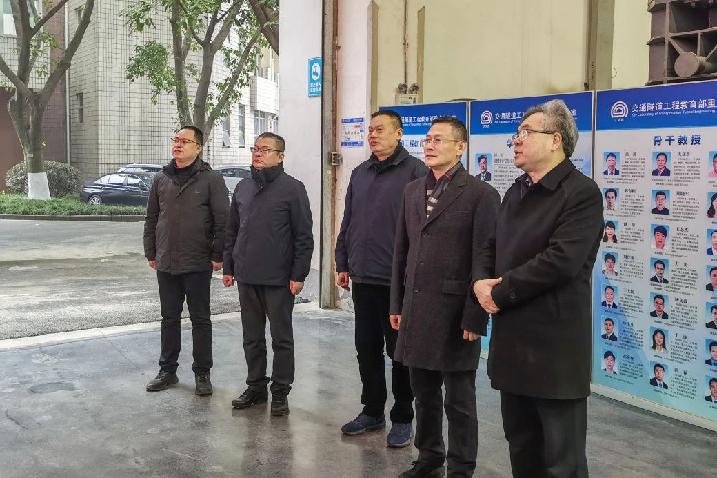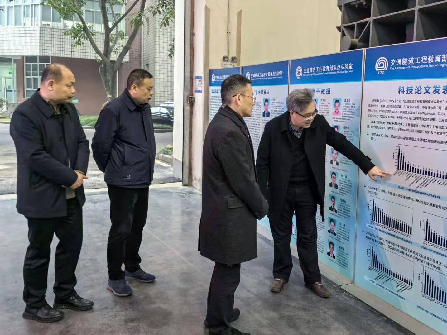 許為民一行參觀了極端環(huán)境巖土和隧道工程智能建養(yǎng)全國重點實驗室,詳細(xì)了解實驗室的發(fā)展歷程、師資結(jié)構(gòu)、科研成果以及運行與管理機(jī)制等情況,并與實驗室負(fù)責(zé)人就相關(guān)問題進(jìn)行交流和探討。