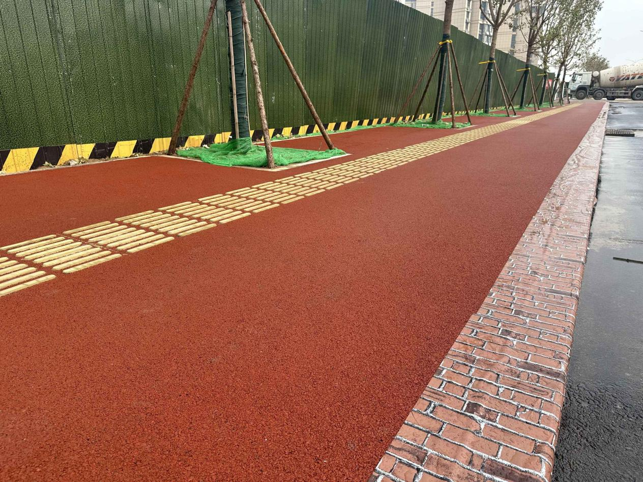 濟(jì)南新舊動能轉(zhuǎn)換起步區(qū)總部經(jīng)濟(jì)四期工程安置五區(qū)項目積極響應(yīng)創(chuàng)新提效號召,在人行道使用聚氨酯彩色瀝青,收效良好。聚氨酯彩色瀝青分子鏈中含有氨酯基或異氰酸酯基類的膠粘劑,其與瀝青材料通過物理粘接形成強(qiáng)度不同的混合物。聚氨酯膠粘劑具備化學(xué)反應(yīng)活性,與碎石混合后可以吸收空氣中的水分或外加水以及與碎石表面結(jié)合水發(fā)生化學(xué)反應(yīng),形成強(qiáng)度極高的化學(xué)粘接,從而極大提高混凝土的力學(xué)強(qiáng)度。項目人員精心籌備,嚴(yán)格按照規(guī)范施工,鋪筑路面表面平順一致,整體效果美觀大方。
