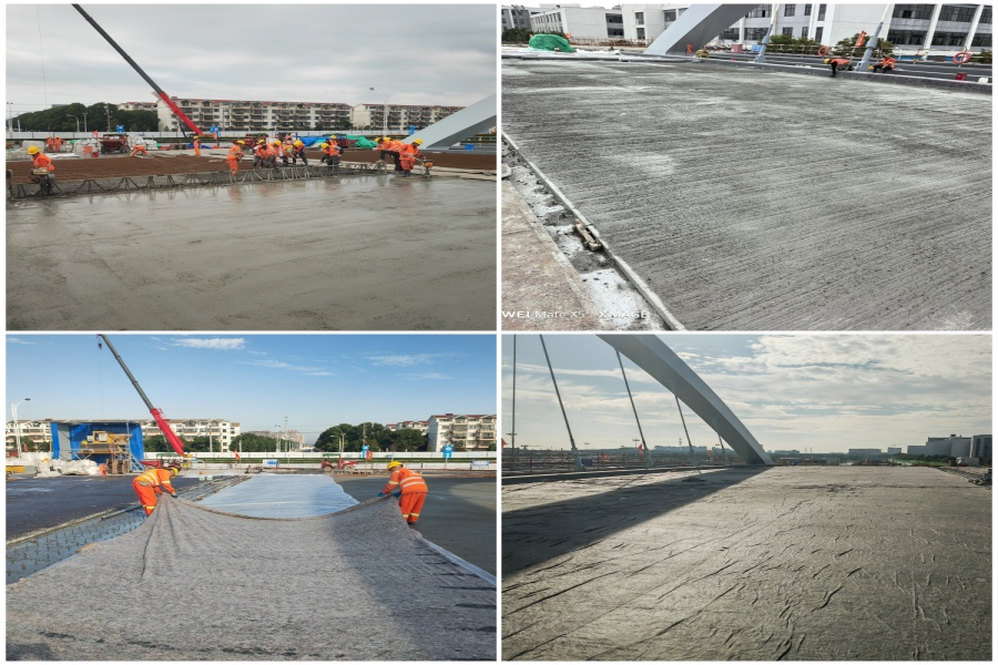 蘇州長陽街北延項目新建一座外傾式鋼結(jié)構(gòu)系桿拱橋,其橋面鋪裝施工采用USFRC低收縮高強(qiáng)韌性抗?jié)B混凝土。USFRC低收縮高強(qiáng)韌性抗?jié)B混凝土用于施工有諸多優(yōu)勢,其低收縮性可提升混凝土的耐久性和使用壽命,高強(qiáng)度能增強(qiáng)結(jié)構(gòu)的安全性與穩(wěn)定性,高韌性讓混凝土在遭受沖擊或振動時不易破裂,抗?jié)B性能表明它可抵抗不小于0.8MPa的水壓力且不出現(xiàn)滲透問題。項目部將繼續(xù)深入貫徹公司“效益提升年”的工作安排,積極探索和創(chuàng)新施工工藝,扎實保障施工質(zhì)量,持續(xù)提升項目部施工質(zhì)量與創(chuàng)新水平。